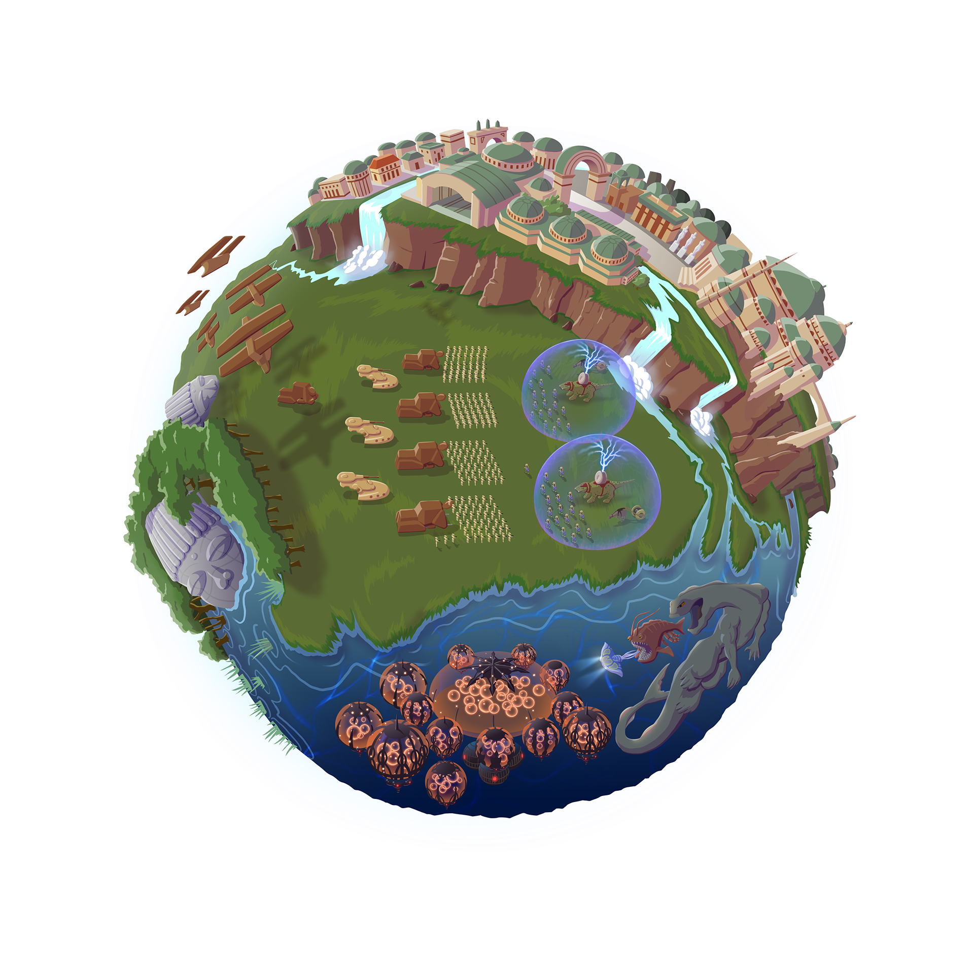 For this project I had the privalege of acting as ad hoc art director. I came up with and pitched the ideas, and planned the designs, and even had a role in making game play desicions. I also wore the hat of a technical artist by being the one to directly place the artwork in the engine and setup triggers, create and implement animations, and create automation processes. I had help with a lot of the initial sketches and some rendering, but what you see below are some highlights of what I worked on.